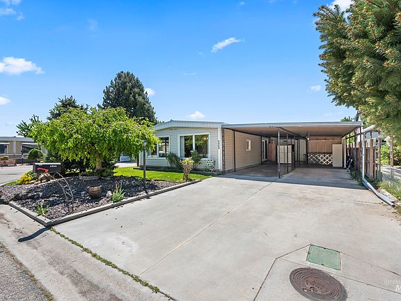 Say goodbye to lot rent fees with this spacious and well-maintained manufactured home in the highly sought-after Harris Ranch area. This rare opportunity lets you own both the home AND the land, NOT in a 55+ community and NO HOAs. Featuring two primary suites, brand-new carpeting, & a functional layout this home is ready for your personal touch. The generous great room is filled with natural light thanks to oversized windows perfectly showcasing how Golden Dawn truly lives up to its name. Thoughtful built-ins maximize space throughout & each bathroom includes a skylight for added brightness. Step outside to a private patio with serene foothill views, complete with roller shades. A convenient storage shed adds extra space or can be a workshop. Enjoy unbeatable access to Boise’s best outdoor amenities, Greenbelt, foothills and Lucky Peak, all just minutes away. Whether you're an investor seeking a high-potential rental or a buyer looking for affordable homeownership in a premier location, this is a must-see!