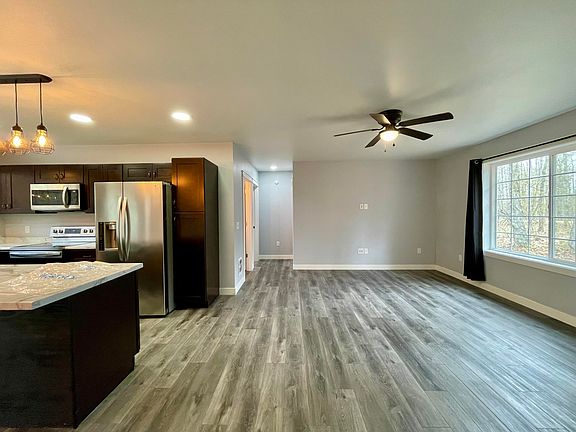 Newer home less than 3 years old that is move in ready! Nestled in the woods is this easy living 3 bedroom / 2 bath home. Featuring an en-suite with jetted tub and walk in closet, 2 additional bedrooms, and an additional full bathroom. Open floor plan dining area, kitchen, and living room. Full sliding door to deck off dining/kitchen area. Functional kitchen island for casual dining or kitchen work space. Two car attached garage. Energy efficient electric heat and appliances. Four lots for room to roam, plant a garden or relax. A koi fish pond and garden beds are all ready for a new owner. Back deck and front porch. All Lakes of the North amenities.