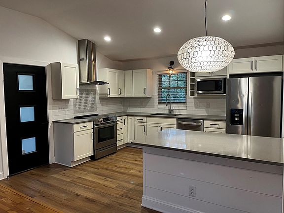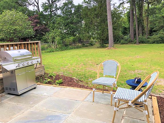 Recently renovated home with hardwood floors, beautiful new kitchen with stone tops and cute bathrooms in a quiet neighborhood with a large private yard, brand new deck (not pictured yet) and bluestone patio, fire pit! Volume ceilings in main area, lots of natural light, blinds on all windows. Outdoor shower, laundry room, car port. Close to Wrightsville Beach and bike trail! Tenant pays utilities. Non smoker, no students please. $200. pet deposit for well behaved pet. 1 year lease. Renter responsible for all utilities, cable, trash.