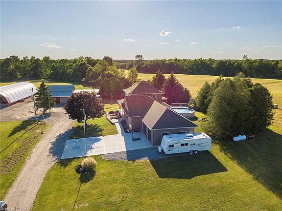 Hunters Paradise! Beautiful farm hidden away from the busy road offers 160 acres, 70 acres of rolling Tuscola Silt Loam that are workable with main field consisting of 60 acres planted in hay, (Rented for the 2020 Season.) 7+3 acres of pasture, 85 acres of bush/ravin and approx. 5 acres of yard and buildings. The possibilities of this farm and existing approx. 1800 sq ft covered storage, 450 sq ft heated workshop and 45' X100' Tarp Building/Shop are many. The Tastefuly decorated original home with addition (2018) offers open concept kitchen, dining, and living room area, amazing master bedroom with ensuite, main floor laundry, and a three pc bath. 2nd. level ads three additional bedrooms and a 4 pc. bath. lower level offers a huge rec-room, a three pc bath, utility room and space for storage. Front Porch, pool, pergola, fire pit and play ground are just extras. The bush and ravines plus having a stream running through, make this an excellent hunting ground. Call for your showing.