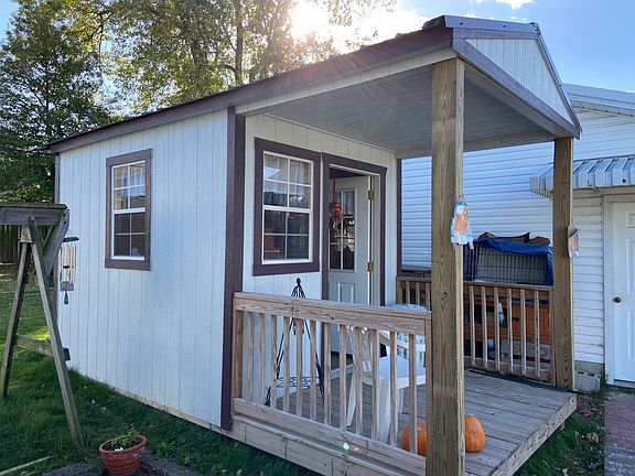 Spacious Rooms in this home including 2 Large Bedrooms, 1 Large Bath, Large Living Room, Kitchen with Built-In Hutch & Breakfast Bar, Sunroom on the Back of the House, Large Back Patio, New Cabin Style Shed with Front Porch and 20x30 Detached Two Car Garage all on a Nice Corner Lot.