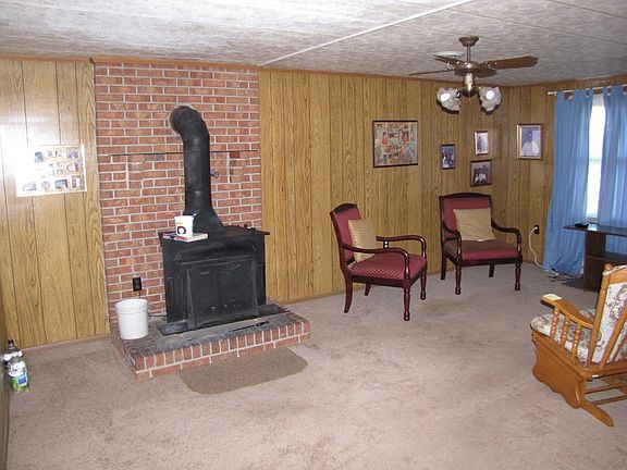 Neat Brick Home on 10 Acres. Large Den overlooking back yard, living room, dining/wood stove open kitchen with island, 3BD, 2 bath, large laundry room. Attached covered patio and Detached 2 car carport. 2 Storage houses and shelter. Great country property.