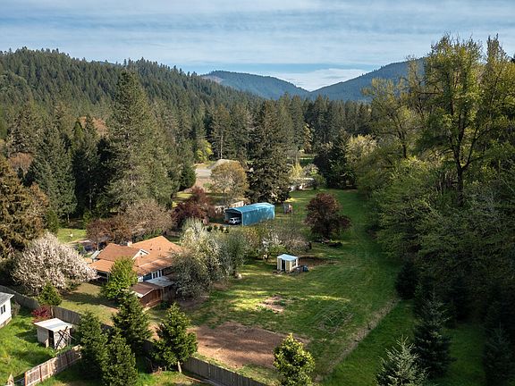 Cozy Hideaway. 3 bd, 2 bath, 1224 sq ft home on a creek w kitchen, dining area, living room, laundry room. Landscaped yard. Attached car port. Outdoor kitchen/Canning area with built in stainless steel, triple sink (not hooked up) Cute, not a cookie cutter home. Sits on 1.29 Acres, the creek runs all along the property. Potting Shed, Shed, and Metal Barn opens on both ends 12ft by 20 ft by 40 ft. Cherry, Apple, Strawberries, Blueberries, multiple types of plum trees & Pear trees. Rosebushes that have that wonderful smell. Lrg Garden Area. 2nd bath needs the shower installed, Shower kit will be left. Needs a heat source to replace the wood stove that is not certified.Well believed to be 25 gpm when put in. Completely fenced with two gates except by the creek. Easy access to I5. Come make this your new home w/instant equity. Some of the furniture can be left. DFN Internet is available. Limited water rights. Information deemed reliable but Buyer's to do their own due diligence.