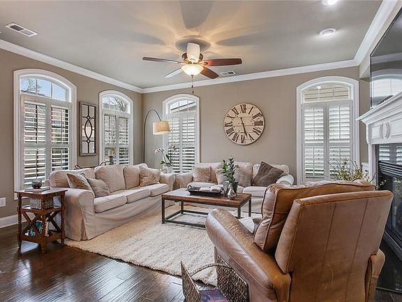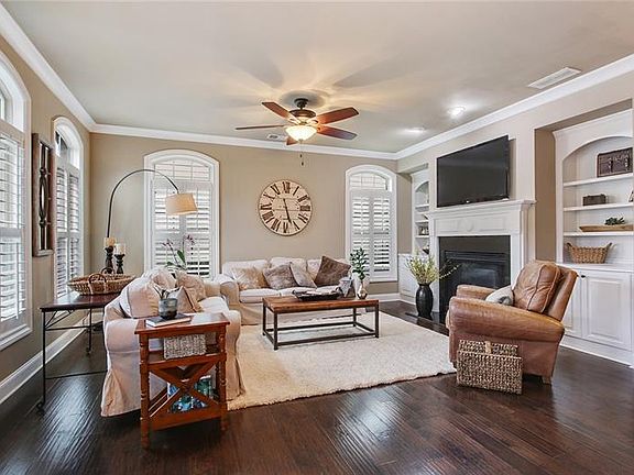 - Interior: Ceilings 9 Ft Plus, Double Vanity, Gas Logs, Separate Shower, Bookcases, Garden Tub, Tile Bath, Carpet