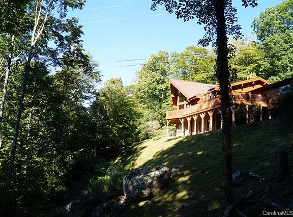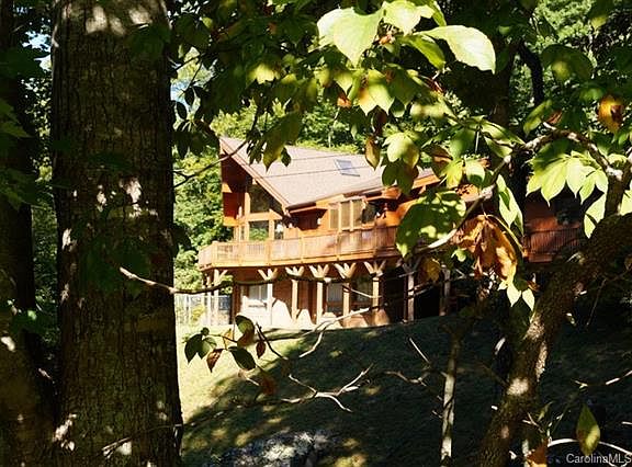 LOVELY LINDAL CEDAR HOME ON 15.9 ACRE ESTATE WITH PRIVATE WATERFALL ALONG A BEAUTIFUL MEANDERING CREEK, TUCKED BENEATH MAJESTIC ROAN MOUNTAIN. As you enter the property on a paved drive, there is a lovely open meadow, fenced area for basketball or tennis, and a small detached garage. You cross the bridge to the main house, rustic log cabin, hobby shop, and large metal storage building. Would also be great for a Bed & Breakfast or a Retreat Center