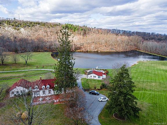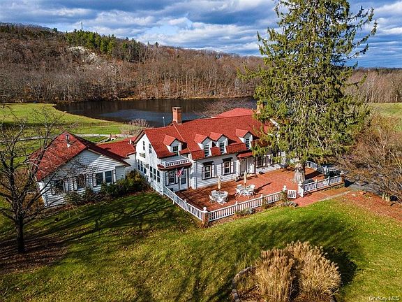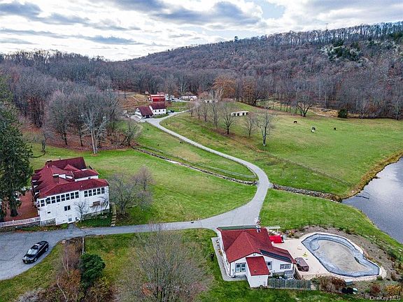 Live life in a healthier, less hectic pace on your 132 acre Private Estate, which is less than 1 hour from NYC. Imagine your own orchards of 60 Fruit Trees, a super-producing vegetable and flower garden, 6.5 acre lake (with cable ski) fed by mountain springs and 2 streams, a packed Greenhouse with aquaponics system producing tropical fruits and tasty fish, a stunning flower garden around a Koi pond with waterfall and stream, resting against a larger duck pond backdropped by mountainous rocks that lead into acres of forests rich in Maple Trees, great for hiking, mountain biking and horse riding. You will enjoy Complete Privacy as the forests provide you with seclusion and gives you and your horses access to 1,706 acres of seldom used parkland. Shops and high-end restaurants are all within 3 miles, ensuring you never have to trade your expected lifestyle for the beauty and privacy of your own estate. Beautiful yet Modern, your private tarred roads connect all the facilities and the entire property is blanketed with high speed internet hotspots, real-time nature cameras and multiple solar arrays on rooftops. The Master Suite is modern with its own exercise room, large walk in closet, stunning three spout giant shower and separate jacuzzi bath and toilet and it has its own deck and electric garage for your golf carts, UTVs and snowmobiles. Below the main floor of the house is a 600 bottle wine cellar, and a solarium with Sauna and large hot tub. The 3 upstairs bedrooms are accompanied by their own 330 degree windowed sun-lounge with mini dining room area, as well as two separate shower and rest rooms. The large Dining Room leads out onto a small deck and overlooks the stream, lake and manicured lawns, and on the other side, opens onto the large front patio that is perfect entertaining up to 50+ people. Your own private riding ring (150ft x 120ft), at the edge of the forest, atop the hill just behind the stables, treats you to a stunning view of your property. Although the present owners have allowed their 4 horses to roam the large pastures resulting in the healthiest and happiest horses, it should be noted that the stables are modern and very comfortable with air conditioning and heating. The swimming pool, the identical shape as the lake when seen from above, is perfect for your family and friend, includes a state-of- art grilling area with large grill, hibachi plate, infrared oil-less fryer, dishwasher, sink and ice maker. The pool is surrounded with Cool Decking , a beautiful yet resilient stone material designed to not burn feet! The adjacent Loge is spacious and includes a 12ft Snooker Table from 1899 and a collection of rare whiskeys, and a large bathroom and changing room. The property includes a modern 2 bedroom apartment atop the stables, professionally decorated, that serves as the accommodation of the current owners full time Estate Caretakers. Another, recently renovated 4 bedroom residence is located in it s own private forest close to the main road, that is currently a rental property. The current owners, who own an island in the Bahamas, originally traded their lifestyle in Westchester county for this stunning estate and have never regretted it.