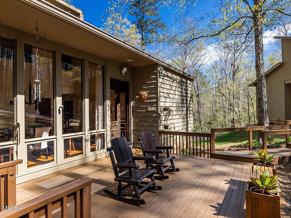 Enjoy your private retreat on 3.49 acres off of Rivoli Drive. A mid century modern architectural gem with a circular drive. Unique front doors and floors of heart of cypress. Property has gated fencing for animals to roam. Additional 3 car carport, outdoor barn/storage/dog kennel area is a huge plus. Energy efficient features, low bills & 3 HVAC split systems. Relax on one of the numerous back decks in your hammock or chair, overlooking gorgeous flowing creek. The basement is finished with bonus party or man cave room and also has a private deck. Great location yet quietly tucked away. Featuring 4 bedrooms & 3+ bathrooms!