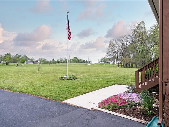 Tucked away on 5.7 private acres, this cozy 2-bedroom, 2-bath cabin is the perfect blend of comfort and functionality. The kitchen boasts maple cabinets, stainless steel appliances with a brand new microwave. all complimented by granite countertops and a convenient Lazy Susan. The warmth of hickory flooring flows throughout, with plush carpeting in both bedrooms for added comfort. The master features a walk-in closet, and both bathrooms are outfitted with hard surface counters. There are fans in each bedroom and two in the great room. Upstairs presents an exciting opportunity - it can easily be converted into a third bedroom and storage is abundant ensuring everything has its place. Freshly painted and move-in ready, this cabin has a fenced in area for your fur babies, a 3 bay pole barn with 220-volt wiring plus RV hookups, a propane tank that is owned & stays with the property, a flagpole out front and a lone paved driveway.