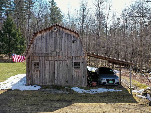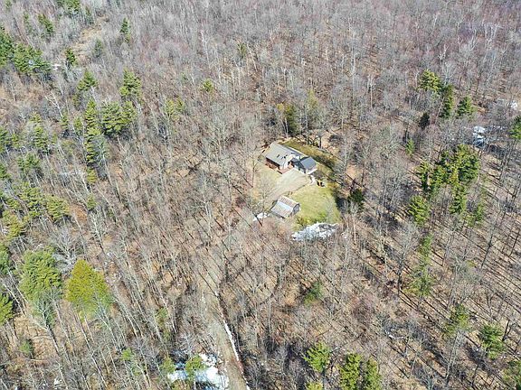 Peaceful and private, this saltbox style log home is not what you might expect! There are lots of windows and elegant lighting fixtures throughout the house bringing the sun in and giving you a serene view of your beautiful, natural surroundings. Stone walls and plenty of garden space outside help define the yard around the house. The rest of the land is fairly wooded and gently sloping and would be a lovely place to blaze some trails! Directly enter into the mudroom from the new deck or the attached 2 car garage and come into a large open living room / kitchen area. The living room is adorned with a wood burning Panton Stone, floor to ceiling fireplace. The cook in you will love this open kitchen space with plenty of prep room, a Viking 6-burner stove and a walk-in pantry. An office with a toasty pellet stove, a full bath (renovated and includes laundry) and an additional family room (with radiant floor heat and stamped concrete flooring) extends along the entire rear of the house. Upstairs you'll find three bedrooms (all with closets) and a 1/2 bath. Need storage? The basement is full sized with plenty of room to store things. There's also a detached barn with electricity and water and lots of space for gardening equipment, ATV's, canoes/kayaks, gear, small boat - you name it. An overhang will keep your extra tractor or vehicle covered.