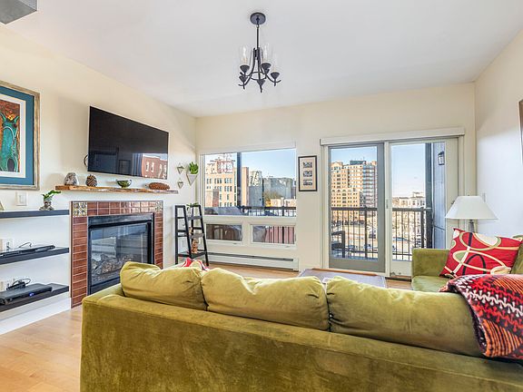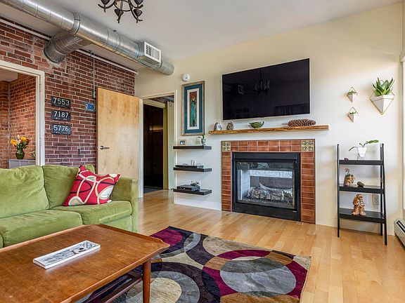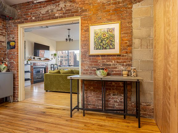 Dramatic original brick walls at entry set the stage for this extraordinary loft condo in the Art's District of desirable downtown Portland, Maine. The early 2000s conversion of the 1875 building created a very special architectural space with vintage as well as modern touches. The current owner is one of the original owners of this much talked about project when it was being renovated. Art is celebrated here with special highlights including custom tiles and back to back living room/bedroom fireplace. There are views of Back Bay from the large windows and the private deck. Winslow Lofts is comprised of three commercial units and 14 residential units. This beautiful space is located on the 4th floor, shared with only two other units. You will love the open feeling of the kitchen and living space and the fabulous design of the bedroom and bath also combining original brick walls and contemporary clean lines. Please use Showing Time.