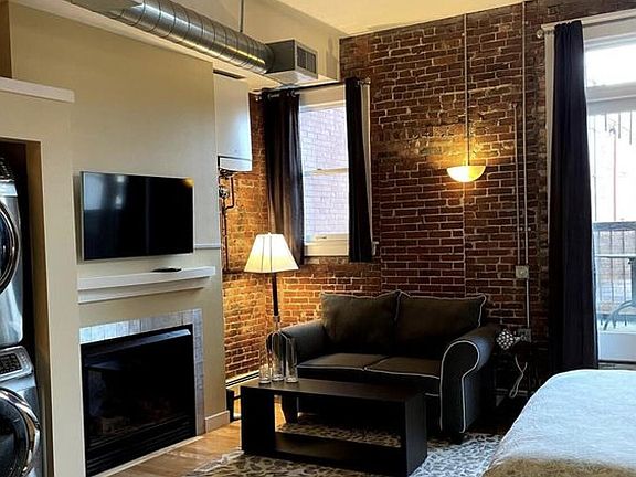 Here is your opportunity to live right in the middle of the action! This beautiful compact condo has everything you need. The modern kitchen with granite countertops, exposed brick walls with high ceilings, in-unit laundry, gas fireplace, private deck, and elevator access and large storage space in the basement make this condo a must see. Walk out your door to all the restaurants, bars, art galleries, theaters and more.