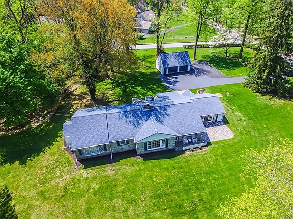 The Pictures Don't Lie! It's Just as Gorgeous in Person! Let me tell you about the setting - It's Fabulous - Corner Double Lot that makes up a complete 2 acre property with Accents on Views! Formal Living Room with Stone propane fireplace, Raised Dining Room over looking the beautiful front yard. Family room with stone, propane fireplace with access to the front and back yards. Gourmet Kitchen with brand new granite counters and glass tile back splash. Kitchen also has breakfast room and sliders to back patio. Main bedroom has wall of closets, brand new hardwood floors, full bathroom and also the laundry room. 2 additional bedrooms and a hall bath. Downstairs is a game room and semi-finished storage area. Detached 2 car garage with attic storage. The only reason this owner is selling is due to job transfer, they just put a long list of upgrades to this home, too many to list here. Buy Now, Gloat Later!