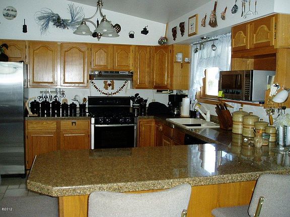 Country Village Subdivision: 4 bdrm, 1.75 bath upgraded home with 2796 SF. Oversized 1.02 acre lot with U/G sprinklers, double attached garage plus 24x24 detached shop/garage. Many upgrades including furnace, A/C, vinyl decking with awning, appliances, granite counter in kitchen, sunroom and window coverings. Large landscaped lot with paved circle drive. Vaulted ceilings and tile floor in kitchen.