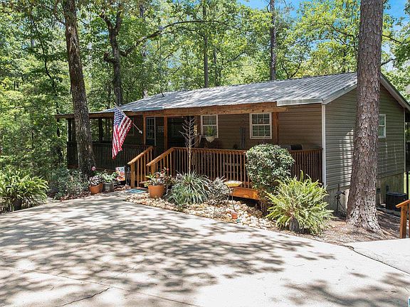Nestled on the serene shores of beautiful Lake Shechi and within a private gated community just 40 minutes south of Birmingham, this beautiful home offers an unparalleled retreat. Boasting an open floor plan and abundant windows with breathtaking lake views, privacy is paramount here. Enjoy the tranquility from the screened-in porch or covered porch out front. The spacious detached, two-car garage offers 675 square feet of additional storage or workshop space. Inside, hardwood floors complement the expansive living areas, including a great room with a cozy fireplace. Originally designed with three bedrooms, the home now features a master suite for ultimate comfort. Additional highlights includes a stocked lake (huge F1 Florida strain bass along with Crappie) making it a fisherman's dream, a pier for lakeside relaxation, and the convenience of an electric motor allowance for serene boating experiences. Don't miss this rare opportunity to indulge in lakeside living at its absolute best!