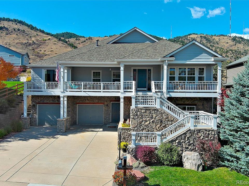 Welcome home to your 5 bedroom, 4 bathroom Golden retreat! Nestled into the foothills, this home backs to an HOA-owned open space and boasts a 6 car, tandem garage! Enjoy your morning coffee or afternoon cocktail on the large, covered deck extending the length of the home. Upon entering you will be greeted with vaulted ceilings, sprawling hardwood floors and abundant natural lighting pouring into this open floor plan. The formal living room and dining room with built-ins flows into the spacious family room with a 3-sided fireplace and gourmet kitchen. The kitchen boasts granite countertops, stainless steel appliances, gas cooktop, center island, pantry, eat-in dining space and backyard access. The primary bedroom features an en suite 5 piece bathroom & walk-in closet. Two additional bedrooms with a jack & jill bathroom, laundry room, half bathroom & dedicated office with built-ins are all conveniently located on the main floor. The finished, walk-out basement has a large great room with flexible-use living space & potential to add a kitchen as plumbing is already set up. The fourth & fifth bedrooms and full bathroom complete the basement. The 6 car, tandem garage is ready for all of your Colorado toys, skis, bikes and tools. Don't miss the beautiful backyard boasting a flagstone covered patio, 4-zone sprinkler system in front & rear & mature landscaping all backing to open space & Apex Park where you can easily enjoy wildlife & nature. The Stonebridge at Eagle Ridge neighborhood is highly desirable and is within walking distance to Shelton Elementary, the community playground, Apex Park trailhead on Lookout Mountain and across the street from Kenny Run trailhead which leads into Golden. Easy access to Red Rocks Amphitheater, I-70, Downtown Golden and more. Don't miss this amazing opportunity to own this stunning home- schedule your private showing today.