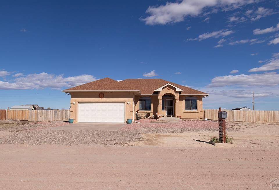 The sweeping driveway provides a grand introduction to this fabulous Pueblo West property! Bursting with character, the bright entrance leads into a residence designed to provide a lifetime of treasured memories. Radiating with light, the open plan living and dining area envelops you in the heart of the home. The kitchen boasts solid cabinetry, a central island and bountiful storage space, while the living area is complete with a cozy gas fireplace. Stepping down into the basement transports you to a wooden clad bar, which currently serves as a family entertainment room or could be transformed into the most stunning space for entertaining guests. The master bedroom includes a private bath, with a second bathroom available for children and guests. All the bedrooms are generously sized, perfect for a growing family, visiting friends or workspace. The tiled laundry room is on the main level and easily accessible. Equally impressive is the huge basement, with storage space aplenty, rough-in plumbing for a future bathroom and a perimeter drain with pump already in place. The majestic outdoor space is nothing less than extraordinary, complete with fencing for pets and patio for grilling under huge skies. Topping it all off with a 2 gar garage, shopping and Hwy 50 a few minutes away, plus easy I-25 access, this property is not to be missed. Schedule your showing today!