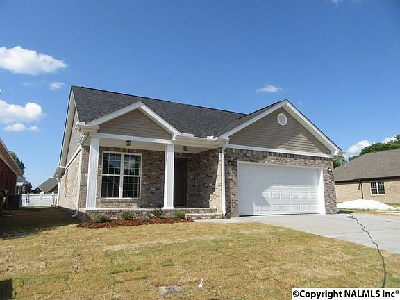 New Price on this New Home in Hartselle City Schools! Gorgeous 3 Bed, 2 Bath with covered front & back porches & spacious open floor plan layout. Great living room with high trey detailed ceilings, crown molding, & opening to formal dining room & eat-in kitchen with breakfast bar. Kitchen features stainless appliances and tile floors. Isolated master suite is great size with high smooth ceilings, crown molding, large walk-in closet & glamour bath with double sink vanity, tile floors, walk-in shower & soaking tub. Guest rooms each feature walk-in closet storage. Great storage with walk up attic storage + 2 car attached garage. Enjoy community lake & walking trails in Lake South Village.
