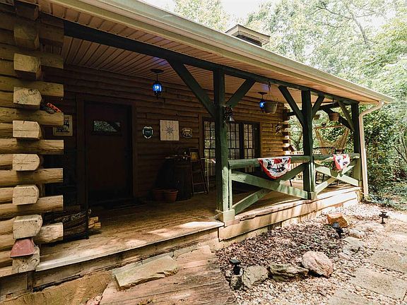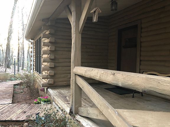 Looking for Log Cabin nestled close to town on 3.98 acres? This beautiful log home boasts wood beams in the vaulted ceilings located in living room and primary bedroom, walking paths that lead you to an entertainers dream, wrap around porches offer ample sitting space.. Complete with a detached 2 car garage with 8 foot openings. An inground pool that can be brought back to life, and so much more! Here is your opportunity to own a breathtaking log home.
