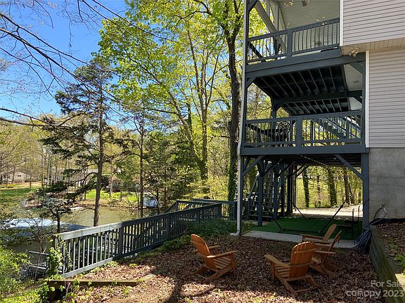 Gorgeous high lake views WOW from all 3 levels of this lakeside cottage. Expansive picture windows on the upper level give light to the open kitchen, dining, and living area on the upper level. Primary bedroom suite on main level has lake views, and the privacy of separation from the secondary bedrooms on upper floor. Finished basement opens to a covered patio and stairs to the lake. Dock includes plumbed waterslide and shower, and a large 2 slip boathouse with plenty of storage for all your lake toys. The 3 deck levels expand the width of the house and are the perfect place to enjoy the tranquil views of Lake Tillery at any time of day.