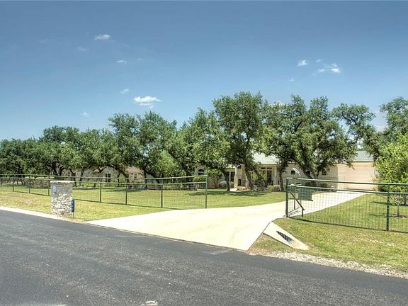 Immaculate and beautiful, RV Owner's dream home! Covered RV parking with FULL hook-ups! Gorgeous Oaks and sprawling, green grass and plants surround this stately, hill country home. Features fencing and private, gated access. Spacious interior with high ceilings and arched window and interior elements, including built-in entertainment center. Custom alderwood cabinets in kitchen, along with breakfast bar, center island and separate breakfast area and walk-in pantry. Dining room is elegant and has plenty of natural light with office across from it. Living room has beautiful view of backyard oasis and has a stone, wood-burning fireplace in the corner. Master bath is very roomy and also has fabulous views of the spectacular yard and large, mature oaks. Covered back porch and roomy deck for friends and family to hang out on. Irrigation system, new roof and new dishwasher. Tucked away in secluded, gated community with very little traffic, this is a gem.