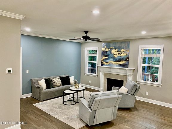 This move-in ready home is close to the front gate, marina, pool, tennis courts, playground, and storage lot. Built in 2018, this home shows as new with a large private lot, 4 Bedrooms, 2.5 baths, low-maintenance/mature landscape, and a side entry garage. A covered front porch, screened-in porch, and spacious back deck provide ample outdoor living space overlooking the large yard. Inside you will find a well-maintained home ready for you to move right in! Spacious open concept floorplan with beautifully chosen features and Magnolia Home paint colors. An invisible pet fence and gutter guards have been installed. Custom handmade dining furniture to convey.