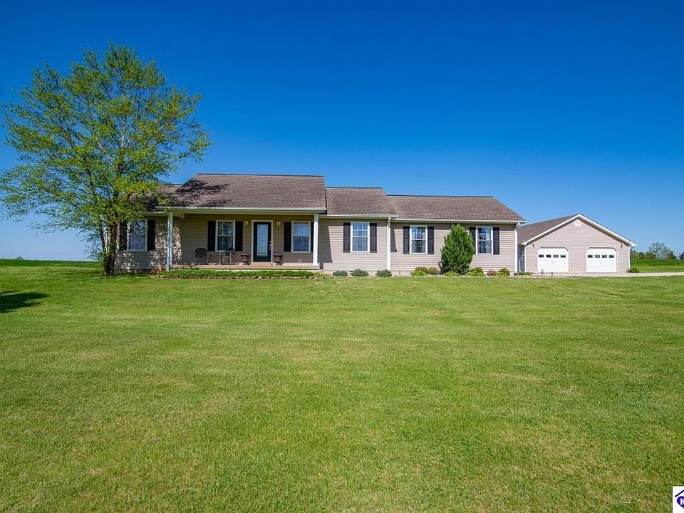 Come tour this beautiful 3 bedroom, 2 bathroom, 1864 square foot rancher sitting on a large 1.2 acre lot. Home has a nicecovered front porch, beautiful landscaping, a large back deck, and a 30x40 detached 4 car garage w concrete floor, 100 amp electrical service and excellent storage in the attic. Inside the home, youll love the hardwood tile flooring, the nice kitchen / diningroom w/an island and pantry, 3 good sized bedrooms, 2 nice bathrooms, and a ginormous great room that you will fall in lovewith. Don't delay. Call today for your personal showing of this fine home, which is only 12 minutes from the Blue Oval BatteryPlant, and only 18 minutes to Wax Marina on Nolin Lake. Call Now.