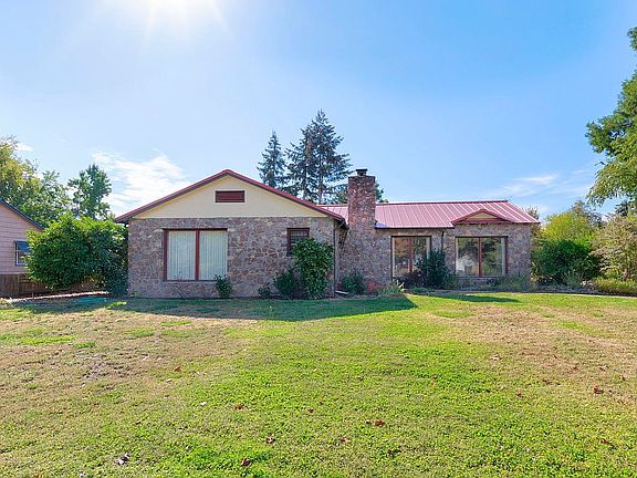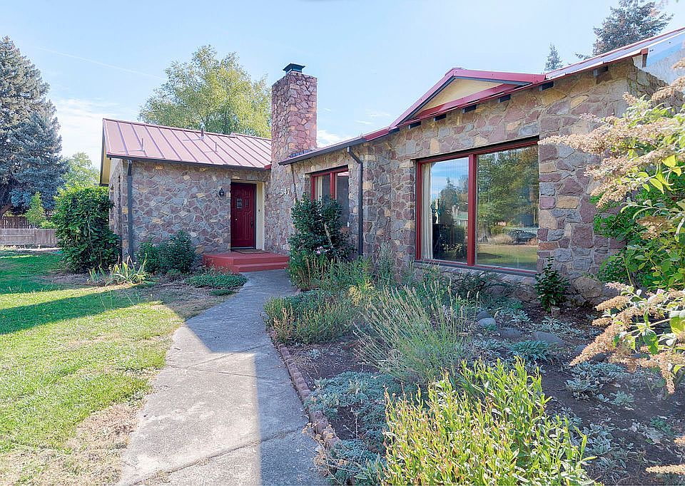 TWO residences plus HUGE shop all on .60 acre right in town! 2052 sf mid-century main home built of natural stone has many classic touches: curved ceilings and walls, original vintage fixtures, built-in cabinetry and hardwood floors throughout, extra spacious rooms, formal dining room, and wood-burning fireplace for ambience. Updates include new gas furnace, ductwork, attic insulation, and new roof in 2022. Second home is an apartment above the detached two-car garage: officially 2bd/1ba, a permitted addition of three big, multipurpose rooms offer a total of over 1400 sf of living and leisure space. The private deck to backyard & established garden area, complete with 8x8 greenhouse, offer residents a calm retreat. Shop is 34x52 with 3 bays, 220 power, and loft. Outside are two RV parking spots w 30A outlets + lots of add’l room for parking and recreation. Tucked away from the main road, yet convenient to amenities, this mini-compound is lovingly maintained and move-in ready. Call today to schedule a showing!