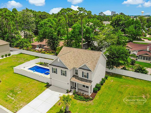 Stunning Coastal Retreat Just Minutes from Surfside Beach. Welcome to your dream home—a beautifully appointed coastal escape, just a quick golf cart ride to the soft, sandy beaches of Surfside Beach.  Situated on a spacious .33-acre corner lot, this home combines laid-back beach living with upscale comfort and functionality.   From the moment you arrive, you’ll be charmed by the inviting front porch—perfect for enjoying peaceful sunsets. Step inside to a spacious foyer that flows into a formal dining room and an expansive open-concept living area, ideal for entertaining guests or relaxing in style.  This thoughtfully designed home features 4 spacious bedrooms and 2.5 bathrooms. The kitchen is a chef’s delight with stainless steel appliances, a gas stove, large granite California style island and a large walk-in pantry. The oversized living room provides plenty of space for gatherings, and it opens directly to your private backyard oasis. Step outside to enjoy a large, heated saltwater pool with custom water features and a hot tub with soothing jets. The generous patio area offers multiple spots to unwind under umbrellas or host outdoor get-togethers in style. Upstairs, you'll find an extra-large primary suite with a luxurious bathroom. Three additional generously sized bedrooms, a full bathroom, and a convenient laundry room with washer and dryer (included) complete the second floor. You’ll also appreciate the abundant storage space with ample closets on both levels. Additional features include; A fenced yard, Irrigation system, new pool heater, gutters, 3-zone HVAC system.   It is conveniently located near Murrells Inlet Marsh Walk with fabulous entertainment and great restaurants, the airport, top-rated restaurants, shopping, medical facilities, and of course, the beach—this move-in-ready home offers the perfect blend of coastal charm, comfort, and convenience. Don’t miss your chance to own this exceptional Surfside Beach retreat!