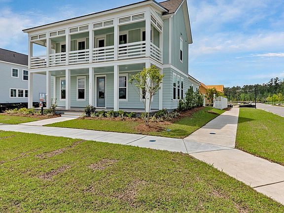 Lowcountry living at its best! This home has beautiful curb appeal with its swinging double-stacked front porches with a metal roof and a hanging gas lantern at the front door. Located on a corner homesite and faces a pond. The Nexton amenity center with resort-style pool, tennis, pickleball, and basketball courts and an awesome fitness center. Entering this home, you have a private library and a large dining room that both have lots of windows to bring in all that nature light. The kitchen is any chef's dream and is open to the great room, which makes it perfect for entertaining friends and family. The owner's suite is downstairs and has a stand-alone tub and a separate shower as well as a large walk-in closet. Upstairs is access to the upper balcony and has two large secondary bedrooms.