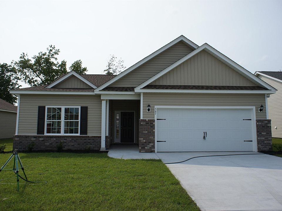 Beautiful Seascape floor plan in the new Ocean Palms community. This terrific open floor plan home will have upgraded grey wood-look LVP flooring under the soaring vaulted ceiling in the family room, kitchen and dining area, and comfortable carpet with upgraded carpet pad in the bedrooms. Stainless appliances, staggered-height Shaker-style white cabinetry, marble-look quartz counters, a corner pantry and a convenient work island/breakfast bar combine to give the kitchen the wow factor you're looking for, and the bay windows in the dining area flood the room with light. Sliders at the back wall of the family room lead to a large covered porch and a concrete patio. The spacious master retreat features a tray ceiling, tile walk in shower, long quartz vanity with double sinks, plenty of storage in the cabinetry and linen closet, plus a huge walk-in closet. Two additional bedrooms and a bath with quartz counters are tucked off on their own private hallway, for privacy. All of the homes in Ocean Palms come standard with the luxury of natural gas (tankless water heater, gas heat, and gas range). The garage is completely trimmed and painted, with floored attic space accessed by drop-down stairs, and an added mop sink. Ocean Palms is conveniently located near shopping, restaurants, schools and world class medical offices and hospitals, and is only a short golf cart ride to Surfside Beach's gorgeous beach and the Atlantic Ocean. Other floor plans and inventory homes may be available, and CUSTOMIZATION OF PLANS IS POSSIBLE!!! Community Pool and Cabana are now open! Photos are of a completed, similar home and may have different features.