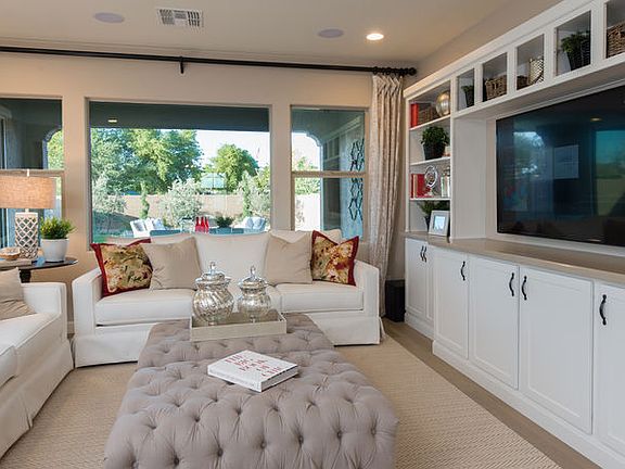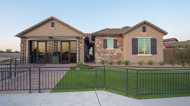 This remarkable model home is now available for you to call your own. The home features a welcoming courtyard entry, three bedrooms and a den, two-and-a-half baths and a three-car garage. The stunning kitchen seamlessly connects to the nook, Great Room and dining room creating the hub of the home. Finishing touches in this home include upgraded cabinets, stainless steel appliances including a refrigerator, beautifully upgraded flooring throughout, two-tone interior paint, a built-in media at the Great Room, pavers at the driveway and courtyard and front and rear yard landscape.