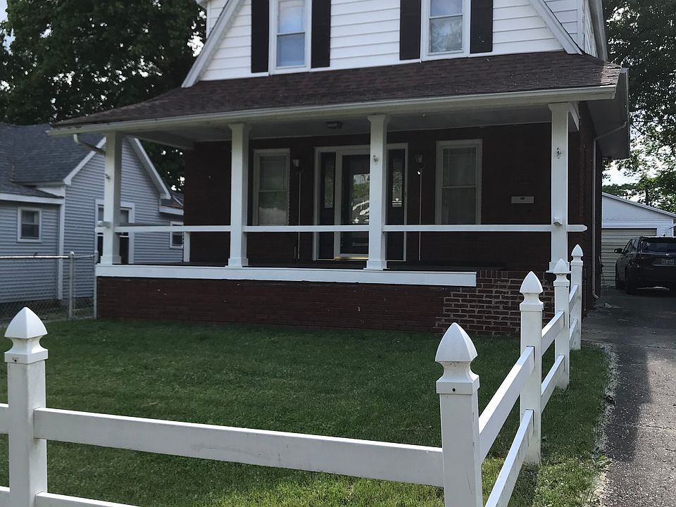 Cute move-in ready 3BR, 1 1/2 bath low-maintenance cape cod with all-new kitchen including all new stainless steel appliances (convection oven, microwave, refrigerator, gas cooktop, dishwasher). All new high-end cabinets. New countertop, stainless sink and disposal. Lots of amenities including fresh paint throughout, renovated tiled bathrooms with new fixtures, new light fixtures and ceiling fans throughout. Beautiful refinished hardwood floors and new roof. Oversized two-car garage with new siding. Completely fenced large back yard. Large covered front porch overlooking quiet brick street. Roomy unfinished basement for storage or future living space. Large wood-burning fireplace in living room surrounded by original built-in cabinets.