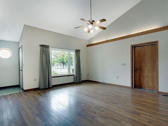 Enjoy easy living in this 5 bedroom, 2 1/2 bathroom NO STEP home! The open living room features beautiful oak woodwork, laminate flooring, large windows and vaulted ceiling. The kitchen is spacious with tall oak cabinets including a pantry. All kitchen appliances including the gas stove, oven and refrigerator will stay with the home. There is room for a table in the kitchen or add bar stools to the eating bar. The master bedroom has two large closets and en-suite bathroom. The bathroom is handicap accessible with roll in shower, accessible sink and toilet. The laundry is on the main floor in the second bedroom. The third bedroom on the main floor has a private half bath. The family room in the basement is large at 18' x 24'. Also in the basement are two large bedrooms along with a full bath and two storage rooms. The one car garage is oversized to allow for more storage. Just outside your back door, with doorbell, is a covered patio and sidewalk that connects to the other homes and circles the playground and shared garden. This home is handicap accessible with wide interior halls and doors, and short ramps at all three exterior doors. This one owner home is built with ICF (Insulated Concrete Form) wall construction which makes the home quiet, sturdy and very energy efficient. Sunnyside Village is a small, friendly community. The HOA dues will provide for exterior maintenance, exterior insurance, lawn service, snow removal, water service, and trash service.
