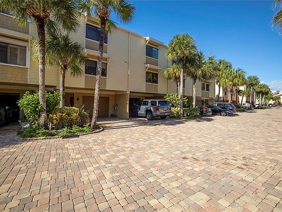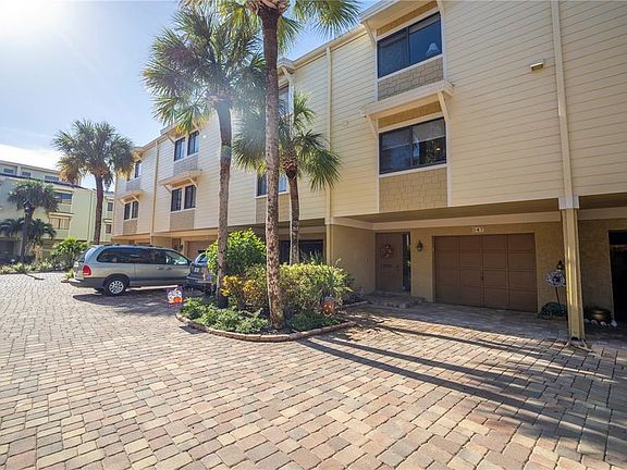 Imagine living mere moments from crystal blue waters and catching whispers of the gorgeous sea breeze right from your doorstep. This is your chance to live in the lap of luxury in the sought after waterfront community of Villages of Paradise even just the name gives a sense of the unique lifestyle opportunity on offer here! Walk to grocery, restaurants, shops, banks, hardware store, and salons, as well as the beautiful wide white sandy beach! Presented to the market is this beautiful two-bedroom, two-and-a-half-bathroom turn key townhouse-style condo. Step inside to a bright interior that is filled to the brim with updated, luxurious fixtures and elegant finishes throughout the entire three-story floor plan. Tigerwood floors flow underfoot in the main living area. In the primary bedroom and bath, opulent crown molding and wood plank vaulted ceilings soar overhead. Soak in the Victoria and Albert stone tub in the totally redone primary bath. His and her closets, a second large bedroom with private bath, tons of storage, and a full sized laundry conveniently located round out the amenities on the bedroom level. A stunning coral stone faced wood-burning fireplace in the open-plan living/dining room is set to keep everyone comfortable when the idyllic Floridian weather decides to get a touch cooler. Open the large hurricane-grade sliders in the living room, primary bedroom and bonus room to enjoy the ultimate indoor/outdoor lifestyle. Just picture waking up to jaw-dropping sunrise views, without even leaving your bed. Entertain friends and family inside or outside, with the two private decks and patio that overlooks the pool and a glimpse of the water. Watch the lighted boat parade from this prime waterfront community. The gourmet kitchen is sure to keep even the most demanding of home cooks happy; it has been totally renovated and the results are incredible. Natural luxury quartz stone countertops, recessed lighting, and glass tiling feature in this space, and an abundance of Samsung appliances and custom-made birch wood cabinets with roll-out pantry add total practicality. And if that isnt enough, the list of desirable features goes on: Second level HVAC replaced 2021, third, Hot water heater replaced 2021, Roof replaced 2017, Low maintenance exterior upgrades include Hardiplank exterior siding and Trex type decks - Flood insurance, internet and TV covered in HOA fees - Well-manicured gardens throughout the complex - One-car private garage - A bonus room with travertine tiled floors and hurricane rated sliding glass doors leading to a private covered paver patio - Pets welcome- no size limitation - Complex has two large pools and a fishing pier and boat slips with short waitlist leased for only $4 a foot (electric and water included) Located within the aptly named Treasure Island, you will be a short walk or bike ride from local restaurants and shops. For those who love to spend time in the sun and sand, a selection of world-famous beaches is only a stones throw away, as is a huge boating community for the avid sailor. The City's Treasure Bay is next door, offering 9-hole, par 3 golf course, basketball, volleyball, tennis courts, shuffleboard, playground. Check this one out now, it wont last at this price!