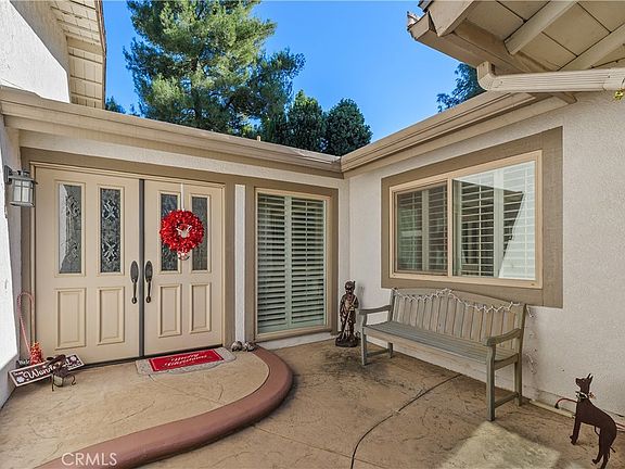 Step inside this courtyard-entry home to be greeted by a dramatic, open living space featuring vaulted ceilings, elegant crown molding, and custom wood shutters throughout. The centerpiece is a cozy crystal rock gas fireplace, surrounded by plenty of natural light.