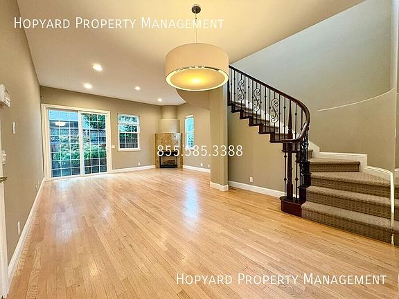 Beautiful home located across the street from Morgan Park!! High ceilings throughout the home. Hardwood floors downstairs with carpet upstairs to reduce noise. Large Master Suite with a corner fireplace, walk-in closet and master bathroom with jucuzzi tub, double sinks and separate shower. Large bedrooms with walk-in closets. Front loading washer and dryer in upstairs laundry. Nice size patio for entertaining and BBQ. Modern kitchen with granite countertops and stainless steel appliances. 2 Car Garage with Extra Storage. This home is professionally managed by Hopyard Property Management. All our properties are professionally cleaned and undergo a thorough inspection prior to any move-in. At any time, you are welcome to call us and speak with a live agent. For additional verification, you may look us up on Google: Hopyard Property Management DRE#02099691 LEASE TERM: 12-MONTH / RENEWABLE Backyard Central Ac/Heat Central Heating Dryer Indoor Laundry Nest Thermostat Pets Allowed Walk In Closets Washer
