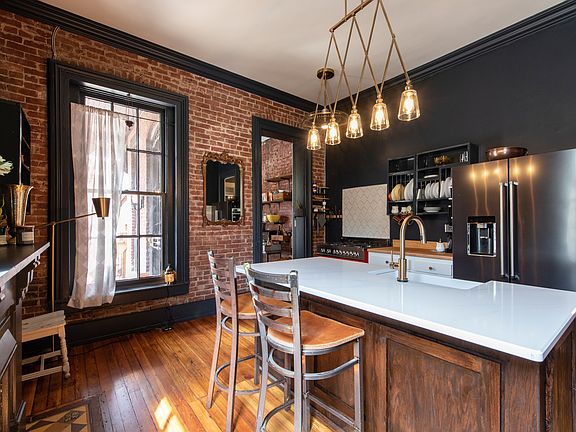 This huge Victorian in Limerick/Old Louisville offers more than 4,000 square feet of living space plus a carriage house apartment. The home's third floor is completely updated and features separate exterior access. It is used as a short term rental/Airbnb (licensed with the city) with a bedroom, living/dining room, kitchen, and bath. With interior access as well it could be an amazing master suite. Downstairs on the first two floors find all the wonderful details of an 1890 home: eight fireplace mantles, beautiful hardwood floors, pocket doors, a six-foot clawfoot tub, and a stunning staircase. Five rooms could be bedrooms; currently two are used as bedrooms, one as a dressing room, one as a media room, and one as a laundry. A large foyer opens to the formal living room which has pocket doors opening to the large dining room. Off the kitchen is a large walk-in pantry with exposed brick and tons of shelving. There's a bathroom on each floor for a total of three in the main house. Out back is an enclosed courtyard with privacy fence. The carriage house has parking for one car. The carriage house one-bedroom apartment features exposed brick and new appliances and is licensed as a short term rental.