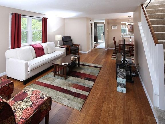 Pristine END UNIT townhouse with CENTRAL AIR is located in popular Herringbrook Village. This complex is set back from route 53 and is the last building in the complex. Featues an open floor plan and sunny kitchen with ss appliances that leads to private back yard deck. The dining area opens to light and bright living room with gleaming hardwood floors. Both baths are recently remodeled. The finished lower level with walkout offers a family room, home office or gym. Welcome Home to Pembroke!