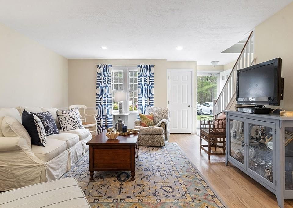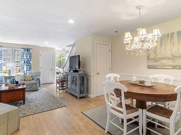 This light, bright and open townhouse is conveniently located in North Pembroke's Herring Brook Village not far from shops, restaurants, walking trails and more. Lovingly maintained and cared for by the current owner, you will be immediately drawn to the home as you enter the expansive living room with quaint dining area adjacent to the eat-in kitchen with access to the back deck. The kitchen boasts bright white cabinets and offers a window into the dining room to allow for ample light throughout the first floor. Upstairs enjoy a spacious master bedroom with two closets, a full bath with laundry and a second bedroom with stairs to a loft that can be used an office, study or additional bedroom. The lower level is fully finished and includes a full bar for larger get togethers on cooler evenings while the back deck can be used for more intimate gatherings in summer months. The large back yard is common area and offers a beautiful wooded backdrop for any occasion. ALL OFFERS BY 5 PM 5/16.