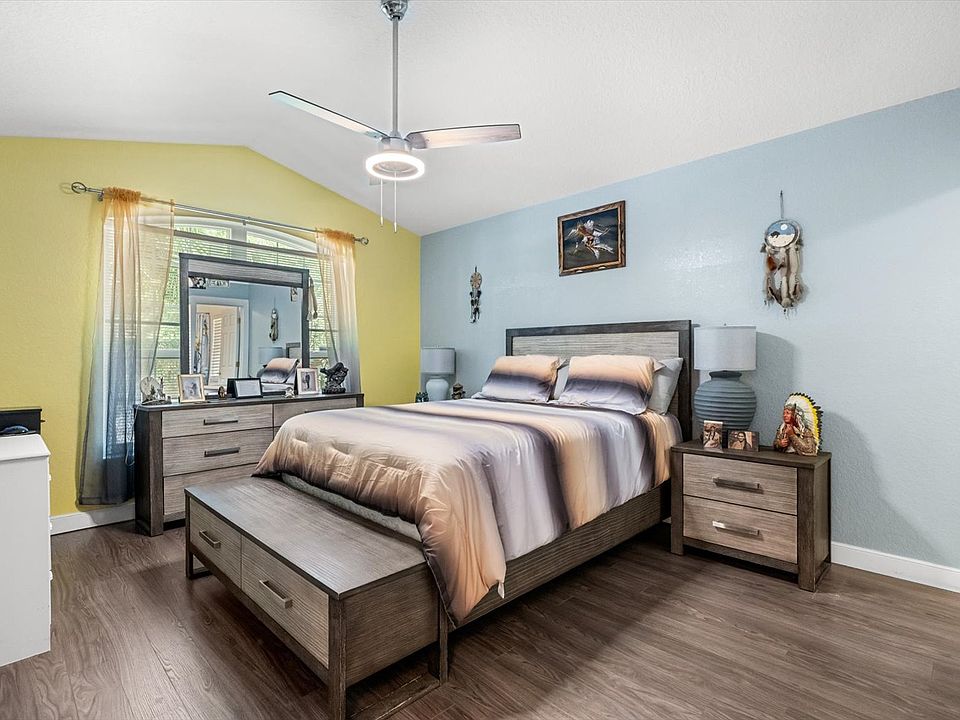 MONTH TO MONTH LEASE - This spacious bedroom features a vaulted ceiling with a modern ceiling fan and plenty of natural light, creating a bright and airy atmosphere. The room comes fully furnished with a comfortable queen-size bed, matching nightstands, and a dresser for ample storage. A stylish bench at the foot of the bed adds functionality and extra seating. Elegant wood flooring adds warmth to the space. Enjoy a private en-suite bathroom equipped with a full-sized tub/shower combo, sleek fixtures, and a spacious vanity with plenty of counter space. Large closets provide generous storage options. Shared spaces include a clean and fully equipped kitchen with modern appliances, a cozy dining area for meals, and a beautiful pool deck and patio area perfect for relaxing or enjoying the outdoors. House Rules: - No smoking indoors - No pets allowed - 1 guest permitted with prior approval This setup is ideal for someone looking for comfort, privacy, and a welcoming home environment. Month-to-Month Lease - No smoking indoors - No pets allowed - 1 guest permitted with prior approval
