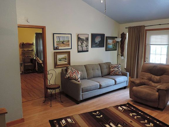 4 BR 3.5 Bth CABIN STYLE HOME WITH 2.38 ACRES. Volume ceilings, wood floors, custom kitchen cabinets, Master BR on main. covered front porch w/ deck in the back. Gas log fireplace. Separate dining area Separate barn style 2 car garage/ workshop. Lot can be subdivided. Seller is in process of moving.