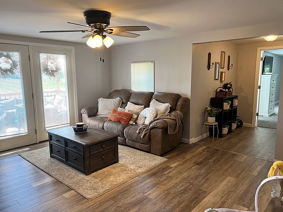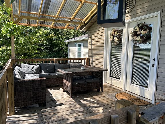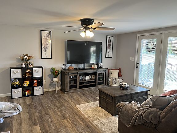 Recently completely renovated home on 1 acre lot! Huge master bedroom with walk-in closet and bath with double vanities. 20x21 detached garage, covered deck, carport and tons of privacy! Remodeled in 2021 - new floors, kitchen, bathroom, metal roof, lighting, exterior vinyl, windows and doors, HVAC, hot water heater, deck and detached garage with electricity and concrete floor.