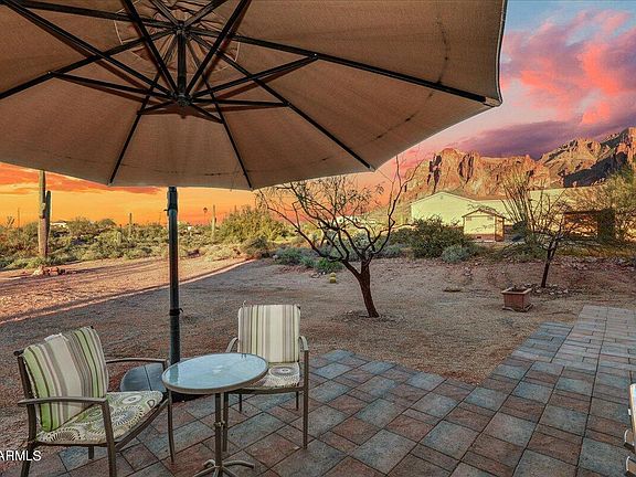 Breathtaking vistas of Superstition Mountain grace this 1.25-acre property, offering ample space for expansion/addition. Tonto National Forest is just steps away from hiking, horseback riding & outdoor activities for nature enthusiasts. Numerous upgrades, open kitchen floor plan with island, granite countertops, alder cabinets, stainless steel appliances, walk-in pantry, ceramic tile, recessed lighting, Master bath w/jetted tub, walk-in shower, dual sinks, granite vanity top, walk-in closet, Master extends to a covered patio, providing private retreat & access to roof-top deck. Oversized 3-car garage, & much more.