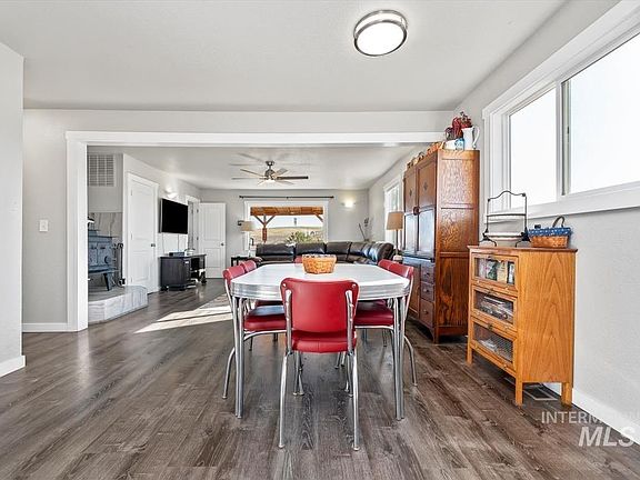 Discover the rustic charm of country living, in Caldwell, ID! With 5 acres that back up to BLM land and plenty of space in the outbuildings, this property has so many great uses! Only 10 minutes from access to the Payette river, this property has so much to offer! The single level ranch style home features granite countertops, stainless steel appliances, 3 bedrooms, an updated bathroom with tile flooring, laminate plank flooring throughout the main living areas, and a cozy wood burning fire place in the living room. New roof in 2018 During the warm months, enjoy the sunrise from the back patio. During the cooler months, snuggle up inside near the charming wood burning stove. Outside is really where this property shines! With a chicken coop, a Corral & Lean-to building for livestock, garden space, a 24x12 Woodshed/Hay Storage, a 12x10 Storage Building, an 11x6 Storage Building, and a fenced in portion of the back yard! Shop is 48x24, with 2 car carport.