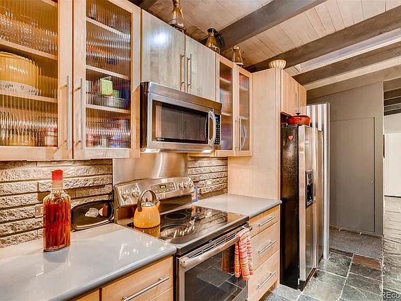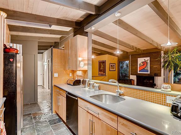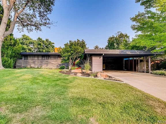Extraordinary mid-century home in the historic and highly sought after Arapaho Hills neighborhood. Open floor plan with kitchen, living room and dining is bright and sunny with oversized South-East facing windows overlooking Littleton and beyond with magnificent sunrise views. Amazing tongue and groove ceilings with Velux operational skylights, fireplace and a continuation of the exterior brick surface work fill the main floor with warmth and MCM architectural charm. This living area leads out to the first of the outdoor patio areas with room for grilling and dining. The large walkout basement with a large family room and bed and bath is a great retreat that includes a wet bar and a wall of glass creating an extension to the lower vine covered patio. The backyard is perfect for entertaining with multiple gathering areas and a heated saltwater pool (15âEUR(tm)x30âEUR(tm)) with 10 jets, hot tub and absolutely beautiful landscaping - Golden Rain Trees, Blooming Magnolia, hydrangeas, Autumn Blaze Maple tree, flowering vines, vegetable garden bed (12âEUR(tm)x6âEUR(tm)) and fabulous patios! The two car carport and built-in storage units offer plenty of parking and storage. Convenient to South Platte river and trails, old town Littleton and light rail. Award winning Littleton Public Schools. Listed on the National Register of Historic Places and City of Littleton's List of Merit.
