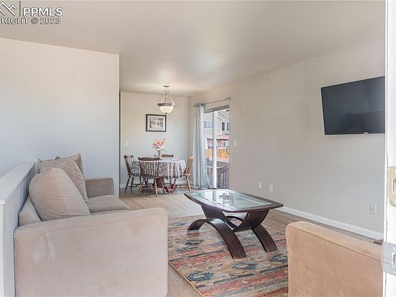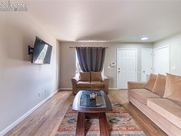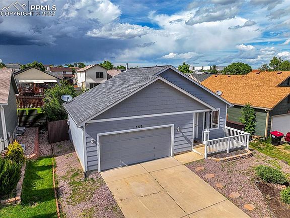 Charming ranch style home with basement in the Windmill Mesa community could be your new home! The home is being sold "As Is" but this 4 bedroom 2 bathroom property is the perfect home that awaits your personal touches to make it yours. With natural hardwood floors throughout the living room and dining areas; an open kitchen that offers plenty of countertop space, cabinets and pantry; along with plenty of closet space in the bedrooms-- there's much for everyone to enjoy. The large main bedroom with ensuite includes a soaker jetted tub to relax in; as a bonus, the home boast a hidden room with electronic locking system to help secure your valuable belongings. Your oversize garage space includes a 220v outlet and the ability to reestablish the air compressor system. Enjoy the outdoors on your oversized deck or hang out near the fire pit within your fully fenced backyard while the family and or pets soak up some fresh air. With easy commutes to Ft. Carson, Peterson AFB and Schriever AFB, along with nearby schools, trails and parks such as Windmill Mesa Park just minutes around the corner. Brand new carpet installed! Be sure to check out this home today.