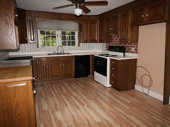 Appliances included: Electric range, dishwasher, window air conditioner (not warranted), and a sump pump (which must be powered up at all times). Laundry hook-up.