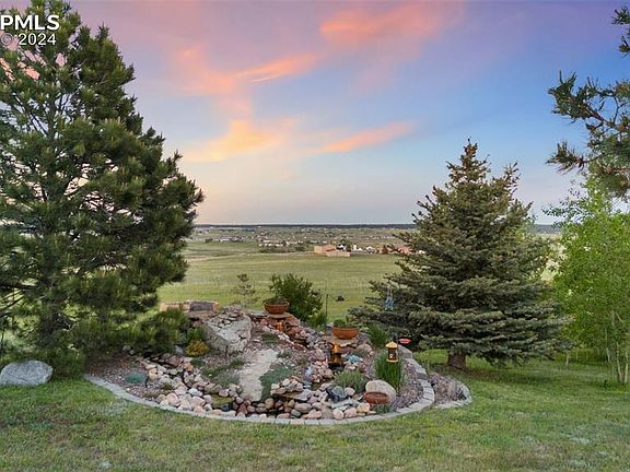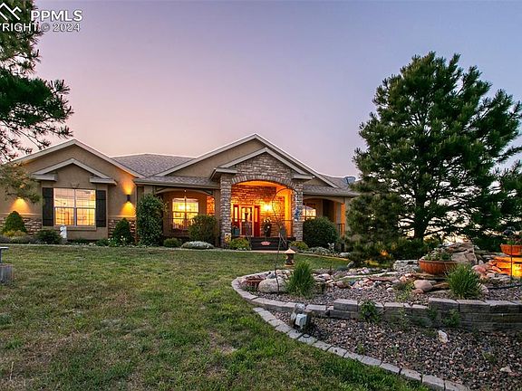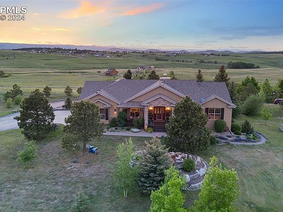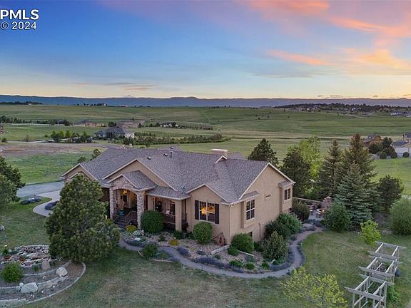 **Check out the Virtual Tour & Custom Video in the link above**This home is expertly sited in Longview Estates & conveniently located, making for an easy commute to Colorado Springs or Denver*Every detail of this 4,396 square foot home was thoughtfully considered, to include the oversized 3 car, main level garage w/ its own private stairway leading down to an additional 3 car tandem garage...for a total of 6+ garage spaces*A large laundry/mud room & a 1/2 bath makes coming in & cleaning up a breeze from the upper garage*The great room, w/ its stone accented fireplace, is open to a dream kitchen*From here, a door leads to the covered trex deck, overlooking the large 5+ acre lot w/ Range views, making entertaining & relaxing at home effortless*The eat in area, off the kitchen & great room, has amazing views from the bay bump out, while the separate, formal dining room allows for full entertaining*In the kitchen, you will find stainless steel appliances, a gas cooktop, a large island & a giant pantry*Just down the back deck stairs is an additional covered patio, walking paths & yet another extended patio*This space has a built in stone gas fireplace, a custom stone table & stools, a lighted water feature & easy maintenance landscaping*There is another water feature, right off the covered front porch, so you can fully enjoy multiple outdoor spaces of this home*Inside, the Primary suite boasts amazing views, 2 closets, a luxurious 5 piece bath, & its very own private door leading to the back deck*The finished lower level has a theater room, a entertaining area w/ pool table, a fireplace and a wet bar, w/ an included wine fridge*French doors lead out from here to the outdoor entertaining spaces*There are 2 large secondary bedrooms w/ a shared bathroom*An additional private junior suite, w/ views, rounds out the lower level space, making it a true retreat for you & your guests*Call your Realtor to book your showing, to see this luxury, expertly maintained home, today.