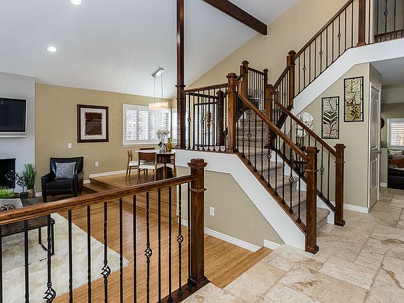 Pottery Barn Perfect!! This gorgeous 4 bedroom 2.5 bathroom home you will notice all the great natural light, high ceilings, rod-iron railing & beautiful hardwood floors. Completely remodeled kitchen complete wi/ high-end SS appliances, granite counters, custom back splash, soft-close cabinets, under cabinet lights, pot filler & a perfect eat-in area that opens up to a huge covered Trex deck. Family room offers all of the great natural lighting, beautiful custom stone fireplace making this space great for the cold winter nights. 3 spacious bedrooms upstairs, updated bathroom complete w/ granite and custom tile. Huge master suite has it's own walk-out to the covered deck. The master bathroom boasts a modern soaker tub, exotic marble, double head shower and hand-picked Travertine tile. Large finished basement complete with a wet bar with granite, custom back-splash and beautiful cabinets.