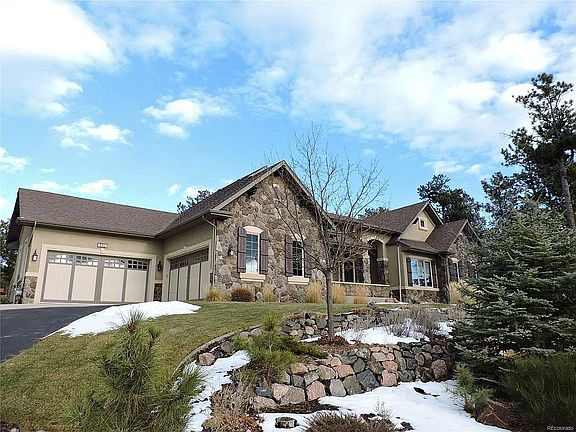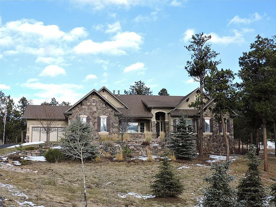This gorgeous estate with almost 5,000 sq. ft. is tucked away on 2.6 acres in the community of Cathedral Pines with outstanding Pikes Peak views. Nothing has been overlooked in the custom beauty that features a great room with soaring beamed ceilings, a floor to ceiling stone fireplace and a wall of windows to bring in natural light to enjoy the beautiful surroundings. The spacious gourmet kitchen is a cooks dream with a huge center island, granite countertops, built-in sub-zero refrigerator, a 6-burner gas range top, a double wall oven, a walk-in pantry, hardwood floors and a walk-out breakfast nook. The main level office with French doors has crown molding and views of front entrance. Main level master retreat features a two-sided gas fireplace, a walk-out to covered deck, a 5 pc. spa with heated floors, walk-in shower and a spacious walk-in closet. Completing the main level is a powder room and a laundry/mud room with built-in cubbies and cabinets.